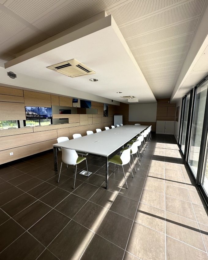 Bureaux, salles de réunion, open-space, bornes de recharge.