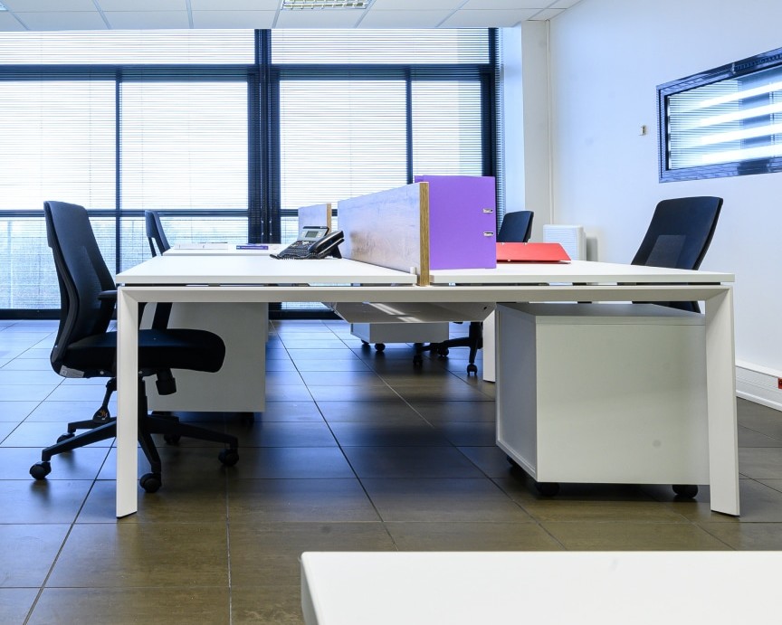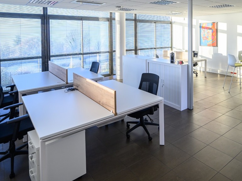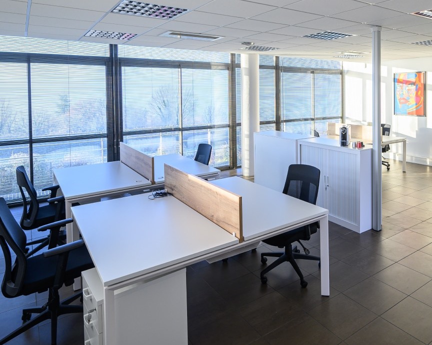 Un bureau partagé dans un espace ouvert, conçu pour un travail serein.
